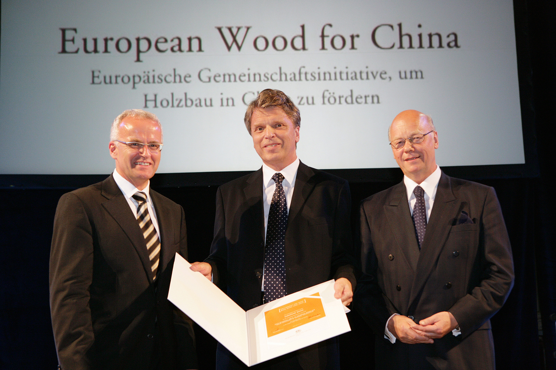 von links nach rechts: Gerald Schweighofer, Prof. Julius K. Natterer, Univ Prof. Dr. Alfred Teischinger